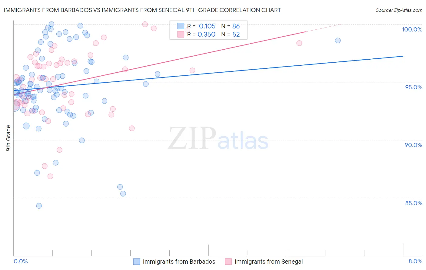 Immigrants from Barbados vs Immigrants from Senegal 9th Grade Correlation Chart