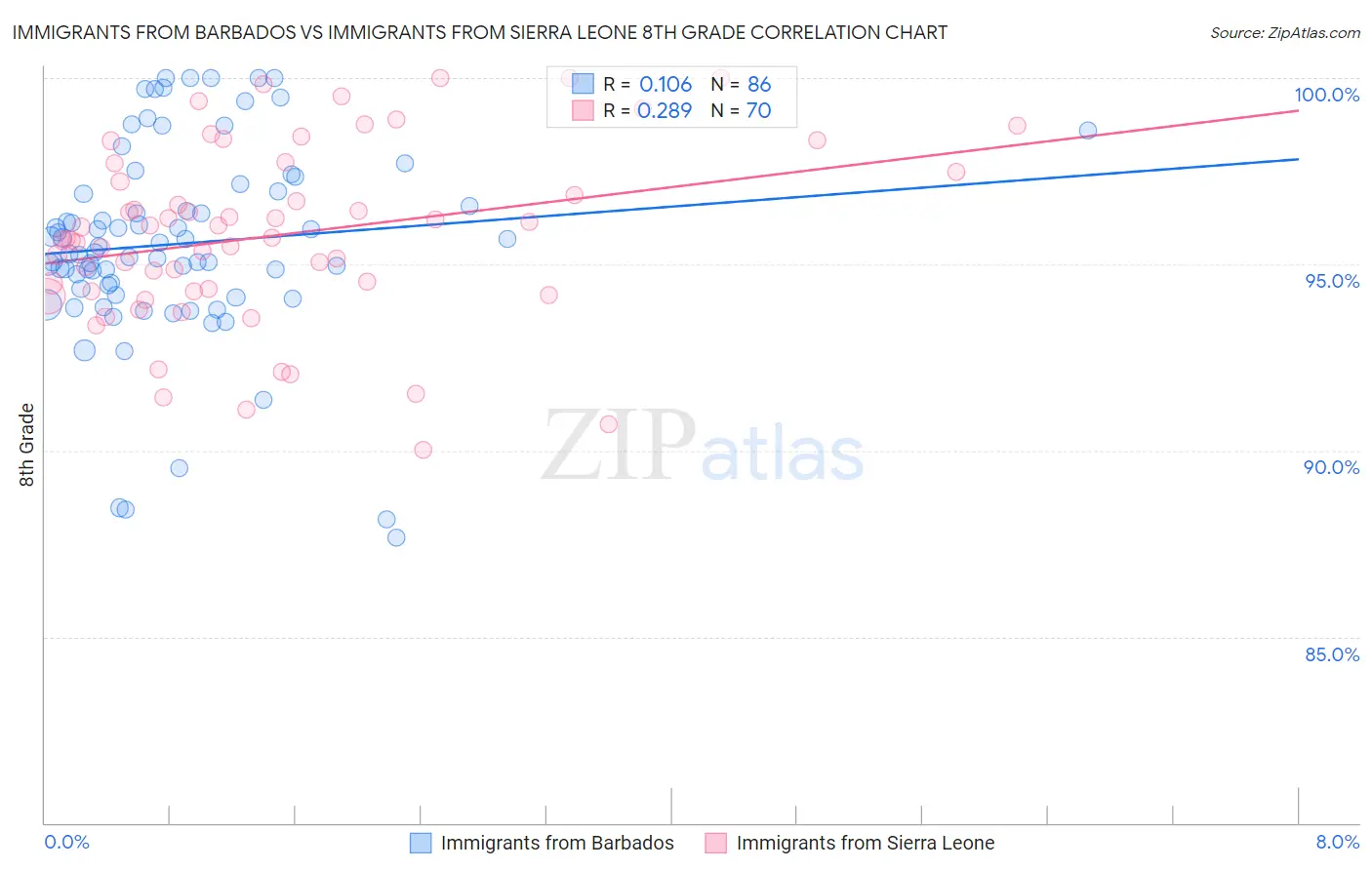 Immigrants from Barbados vs Immigrants from Sierra Leone 8th Grade Correlation Chart