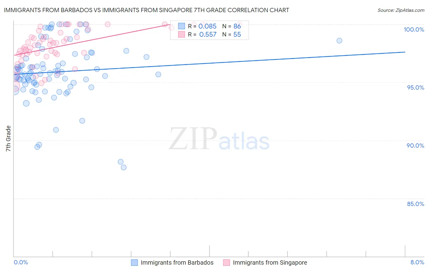 Immigrants from Barbados vs Immigrants from Singapore 7th Grade Correlation Chart