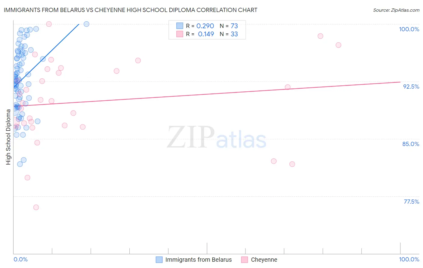 Immigrants from Belarus vs Cheyenne High School Diploma Correlation Chart