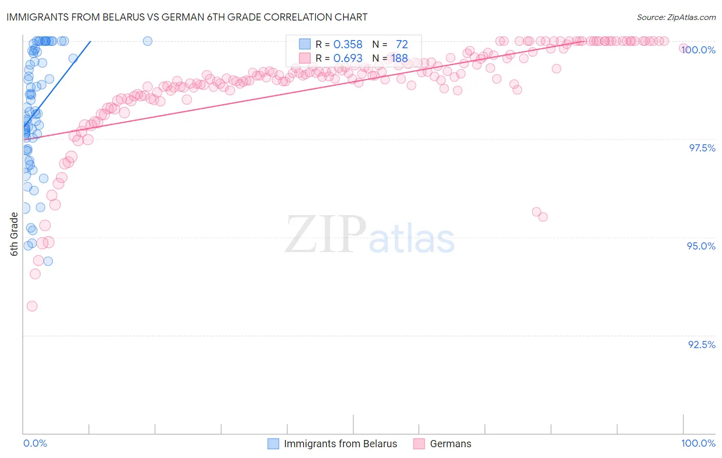 Immigrants from Belarus vs German 6th Grade Correlation Chart