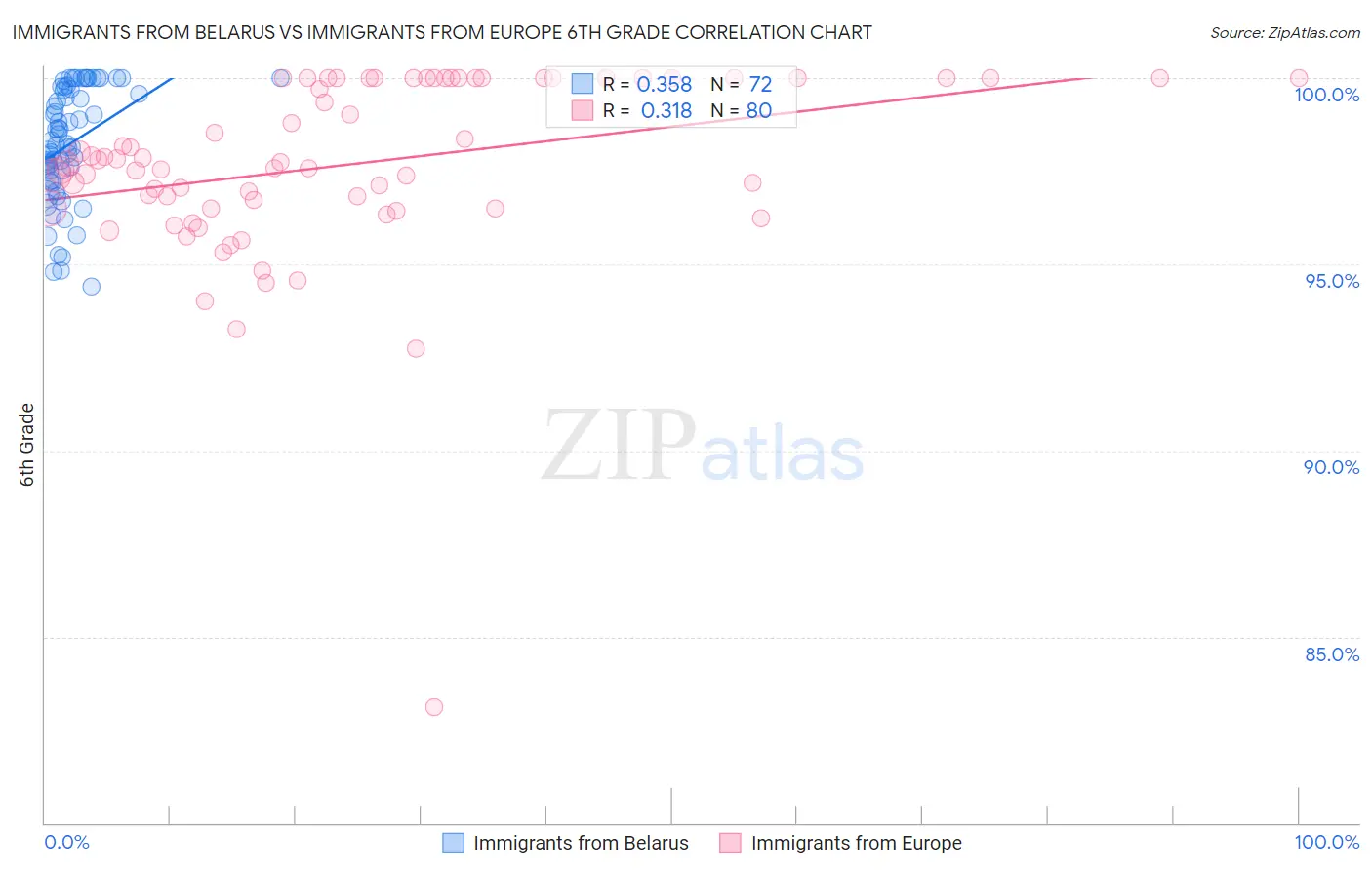 Immigrants from Belarus vs Immigrants from Europe 6th Grade Correlation Chart