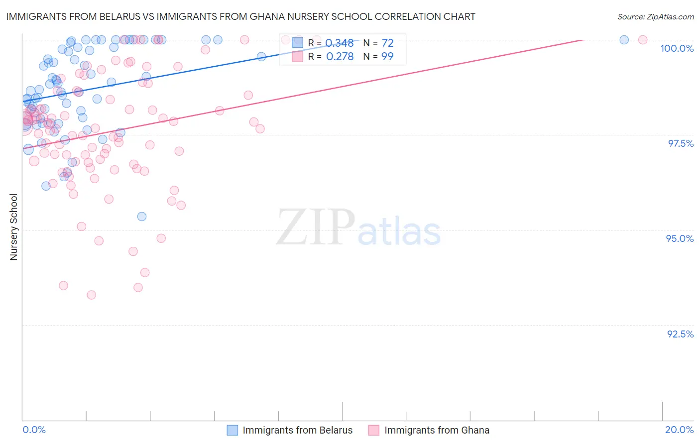 Immigrants from Belarus vs Immigrants from Ghana Nursery School Correlation Chart