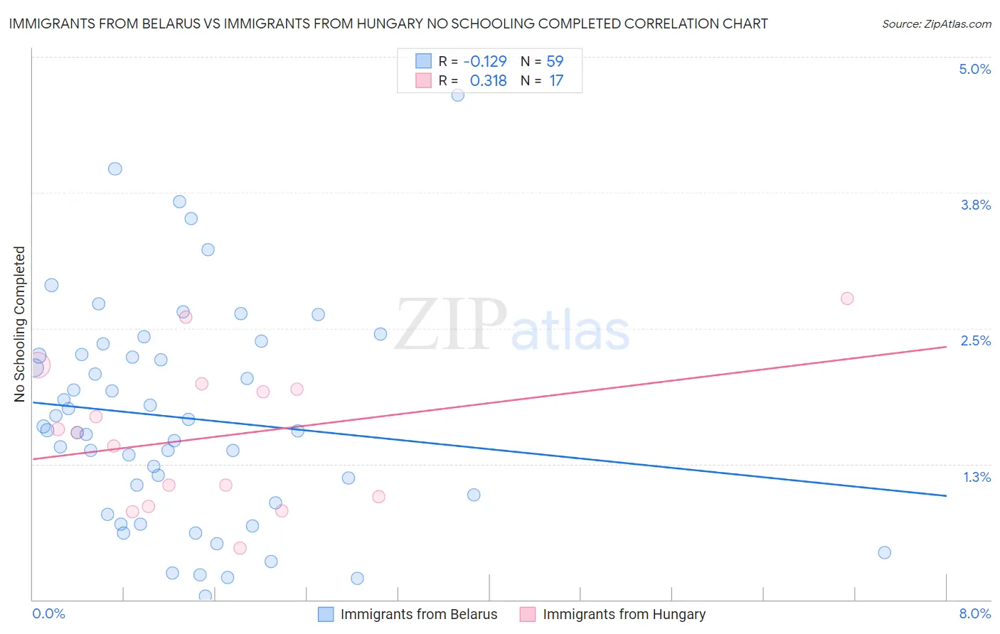 Immigrants from Belarus vs Immigrants from Hungary No Schooling Completed Correlation Chart