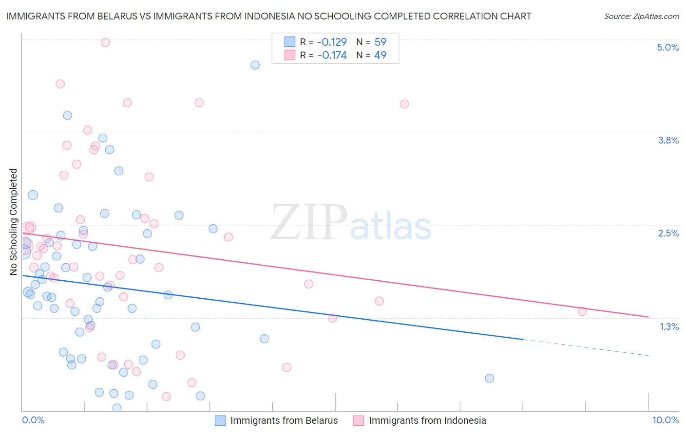 Immigrants from Belarus vs Immigrants from Indonesia No Schooling Completed Correlation Chart