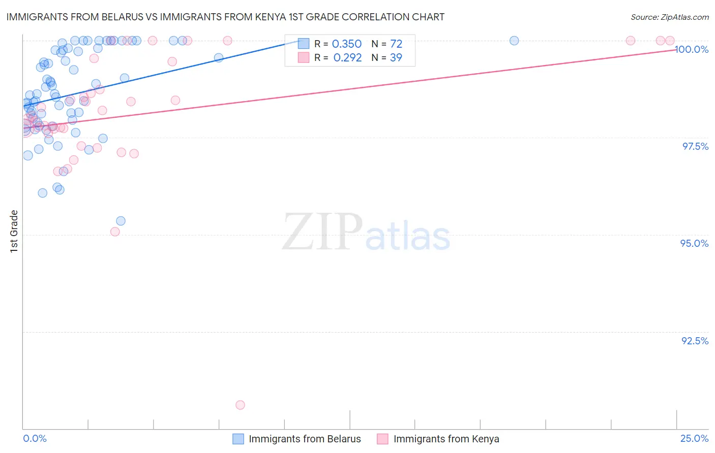 Immigrants from Belarus vs Immigrants from Kenya 1st Grade Correlation Chart