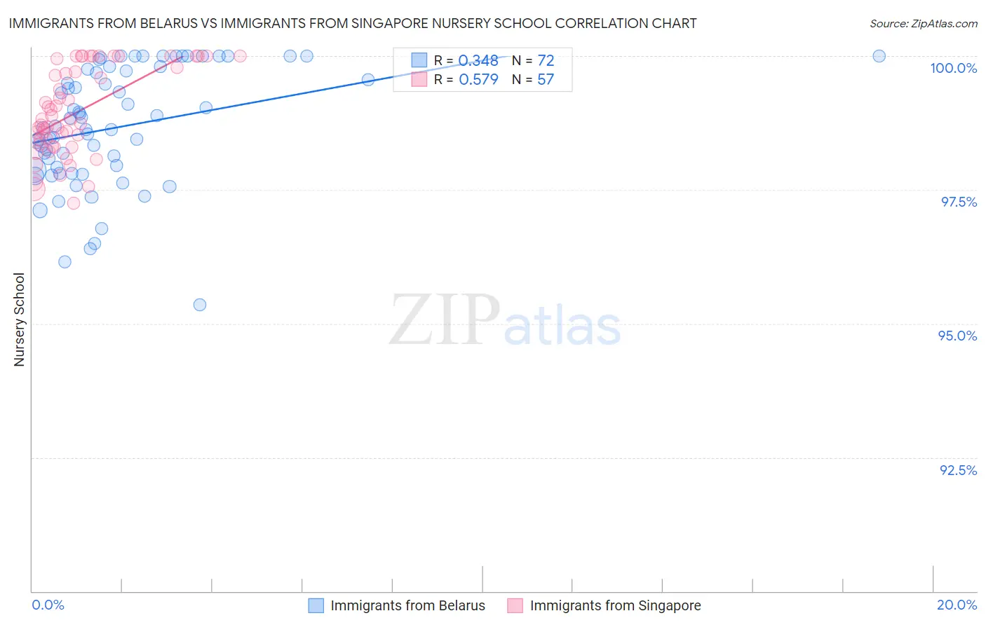 Immigrants from Belarus vs Immigrants from Singapore Nursery School Correlation Chart