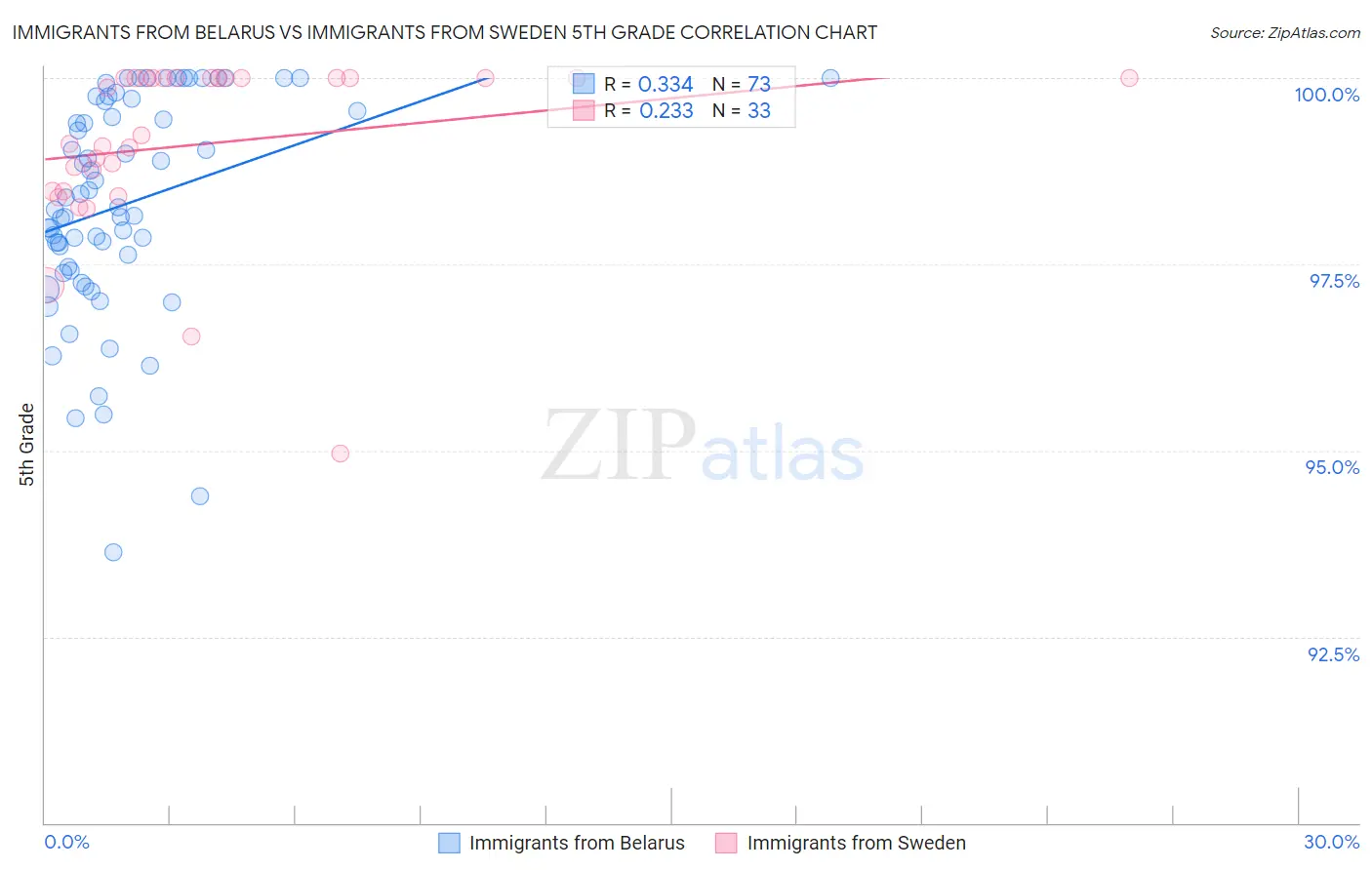 Immigrants from Belarus vs Immigrants from Sweden 5th Grade Correlation Chart