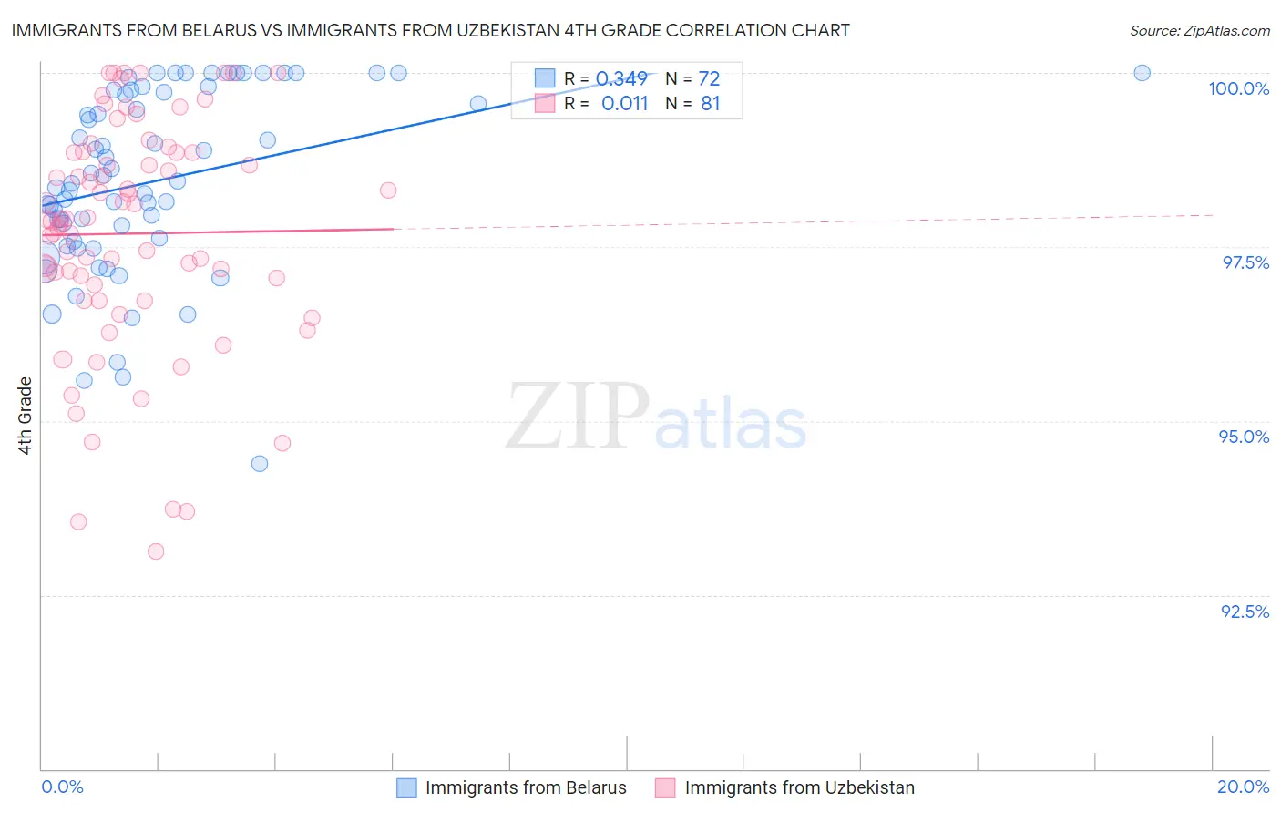 Immigrants from Belarus vs Immigrants from Uzbekistan 4th Grade Correlation Chart