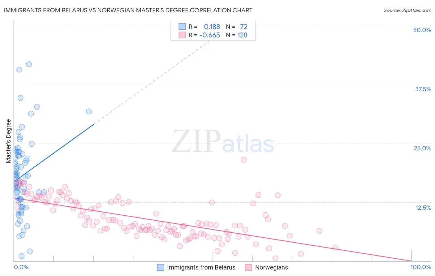 Immigrants from Belarus vs Norwegian Master's Degree Correlation Chart