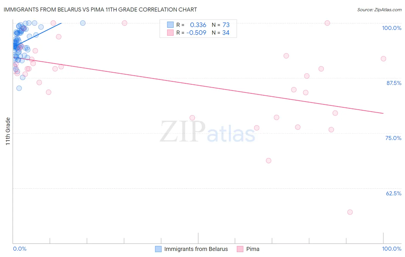 Immigrants from Belarus vs Pima 11th Grade Correlation Chart