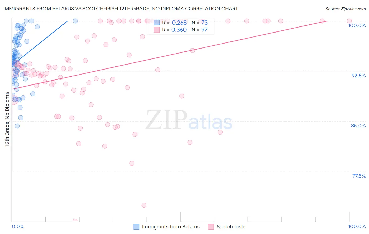 Immigrants from Belarus vs Scotch-Irish 12th Grade, No Diploma Correlation Chart