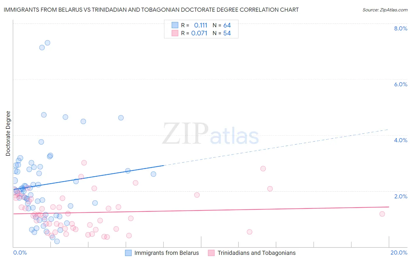 Immigrants from Belarus vs Trinidadian and Tobagonian Doctorate Degree Correlation Chart