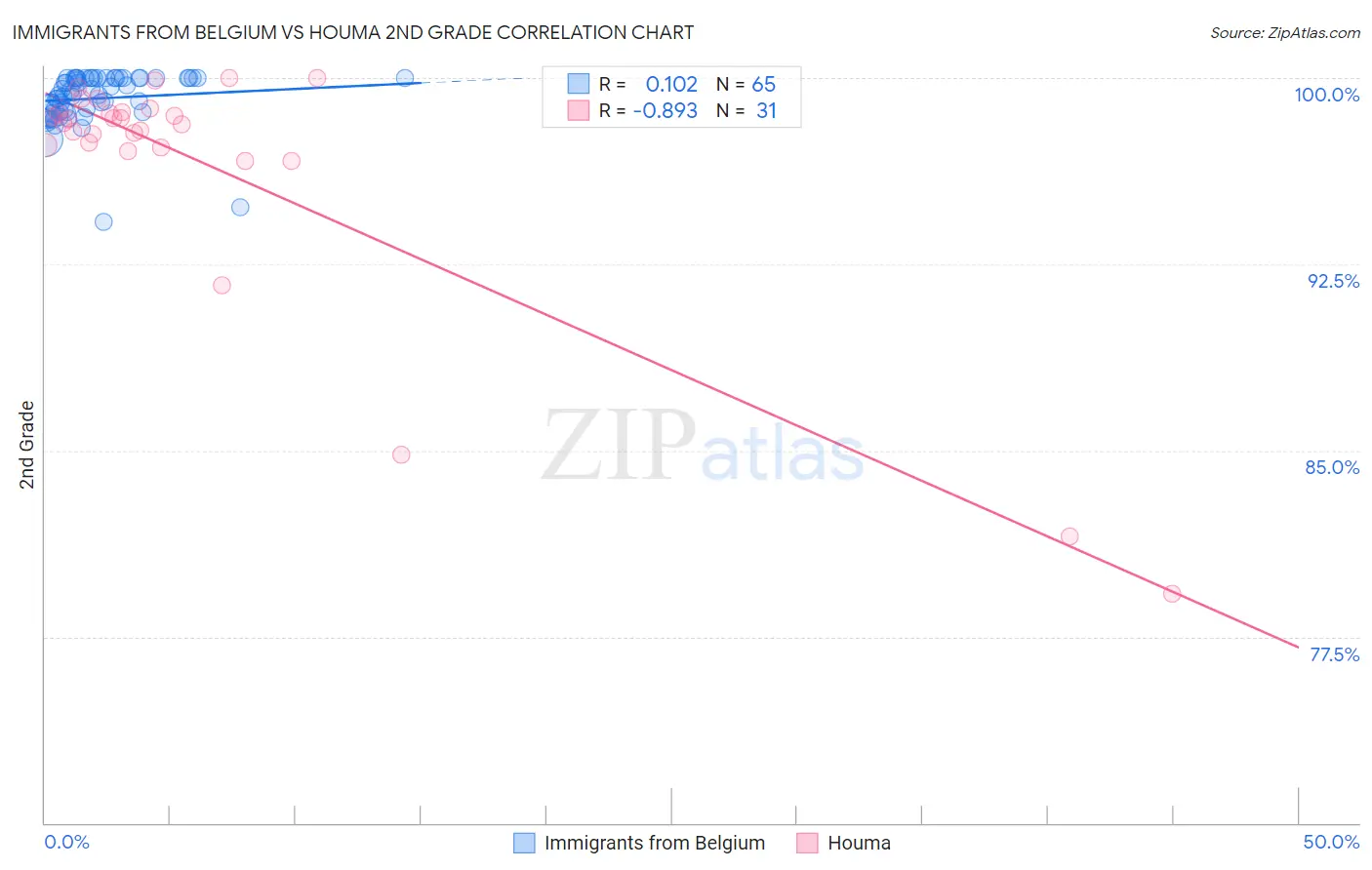Immigrants from Belgium vs Houma 2nd Grade Correlation Chart