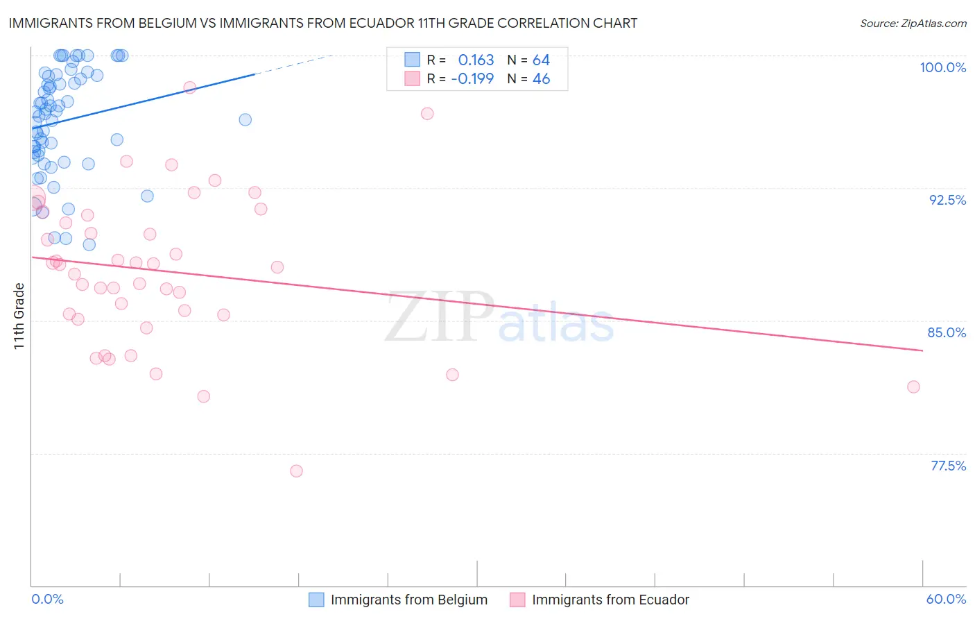 Immigrants from Belgium vs Immigrants from Ecuador 11th Grade Correlation Chart