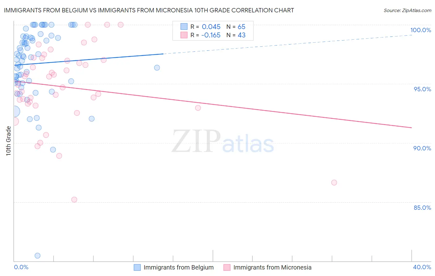Immigrants from Belgium vs Immigrants from Micronesia 10th Grade Correlation Chart