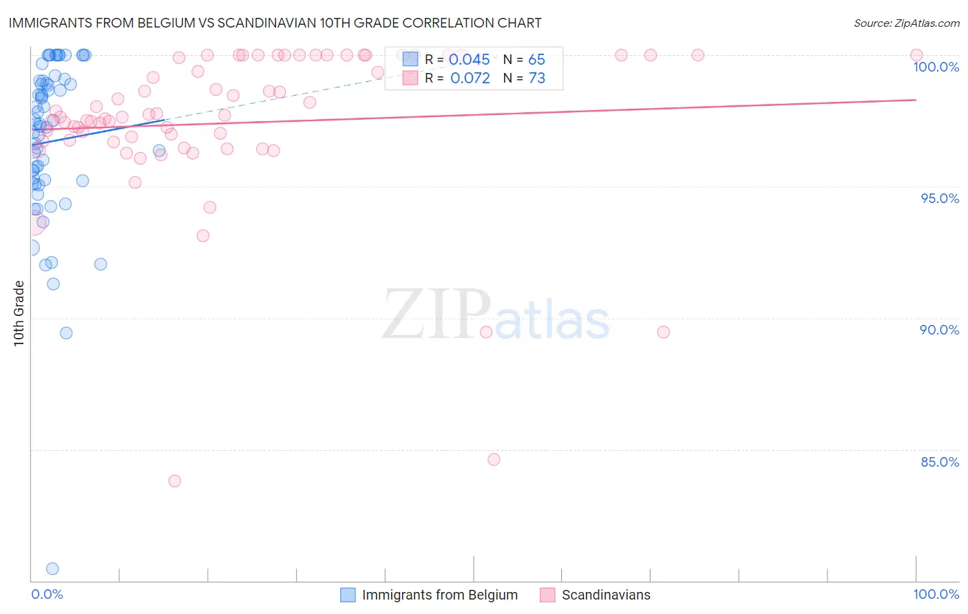 Immigrants from Belgium vs Scandinavian 10th Grade Correlation Chart