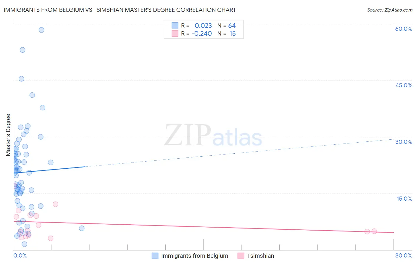 Immigrants from Belgium vs Tsimshian Master's Degree Correlation Chart
