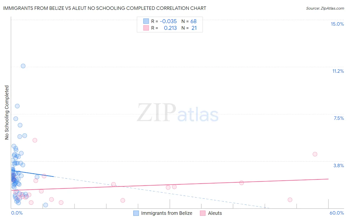 Immigrants from Belize vs Aleut No Schooling Completed Correlation Chart
