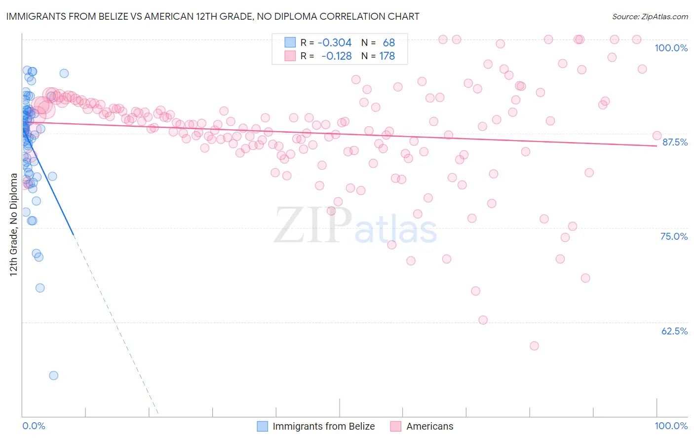 Immigrants from Belize vs American 12th Grade, No Diploma Correlation Chart