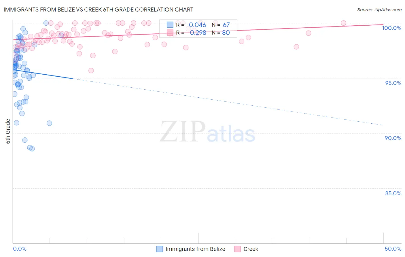 Immigrants from Belize vs Creek 6th Grade Correlation Chart