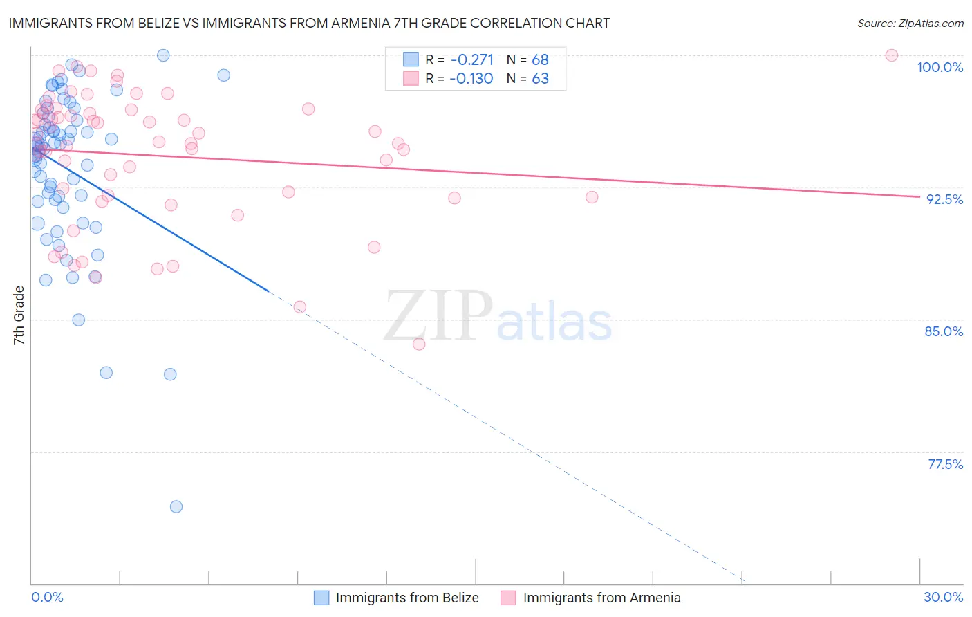 Immigrants from Belize vs Immigrants from Armenia 7th Grade Correlation Chart