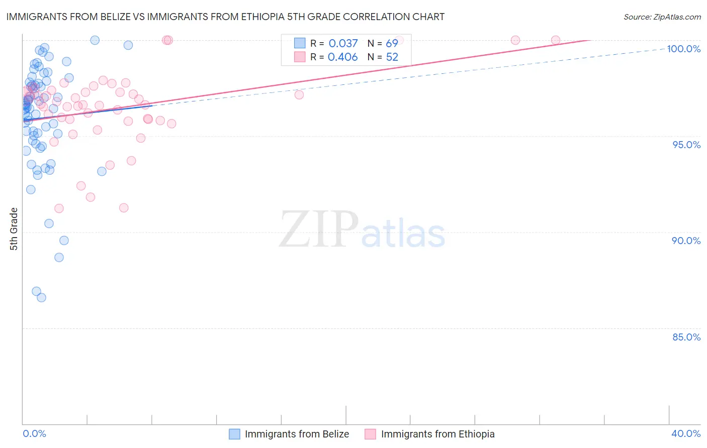 Immigrants from Belize vs Immigrants from Ethiopia 5th Grade Correlation Chart