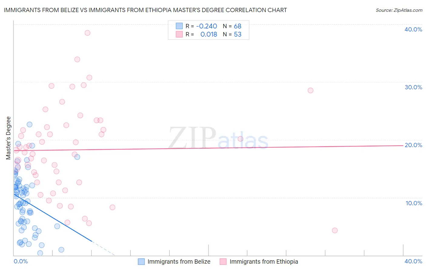 Immigrants from Belize vs Immigrants from Ethiopia Master's Degree Correlation Chart