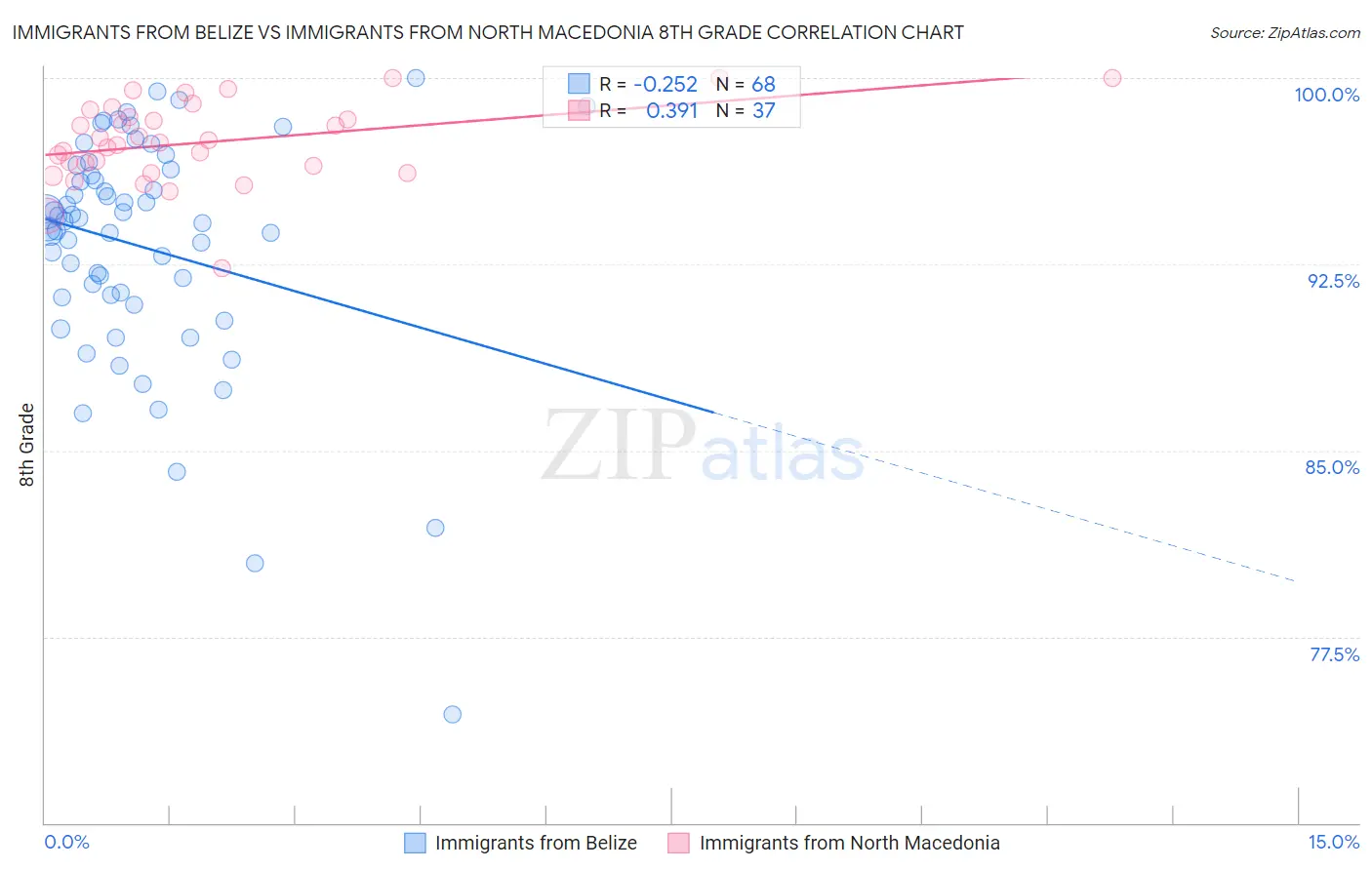 Immigrants from Belize vs Immigrants from North Macedonia 8th Grade Correlation Chart