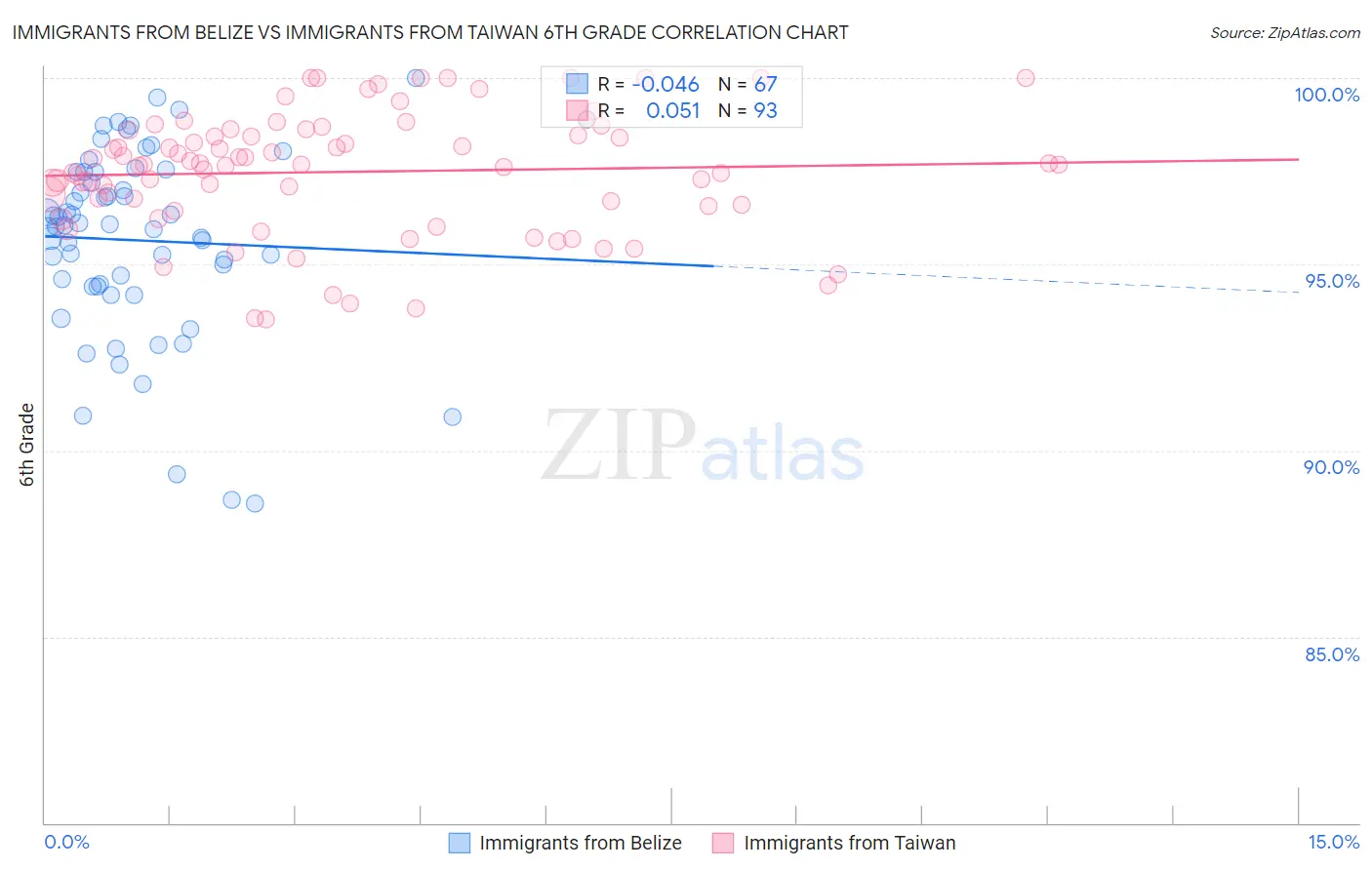 Immigrants from Belize vs Immigrants from Taiwan 6th Grade Correlation Chart