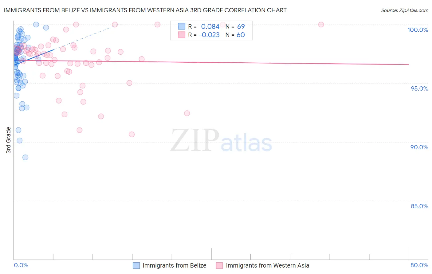 Immigrants from Belize vs Immigrants from Western Asia 3rd Grade Correlation Chart