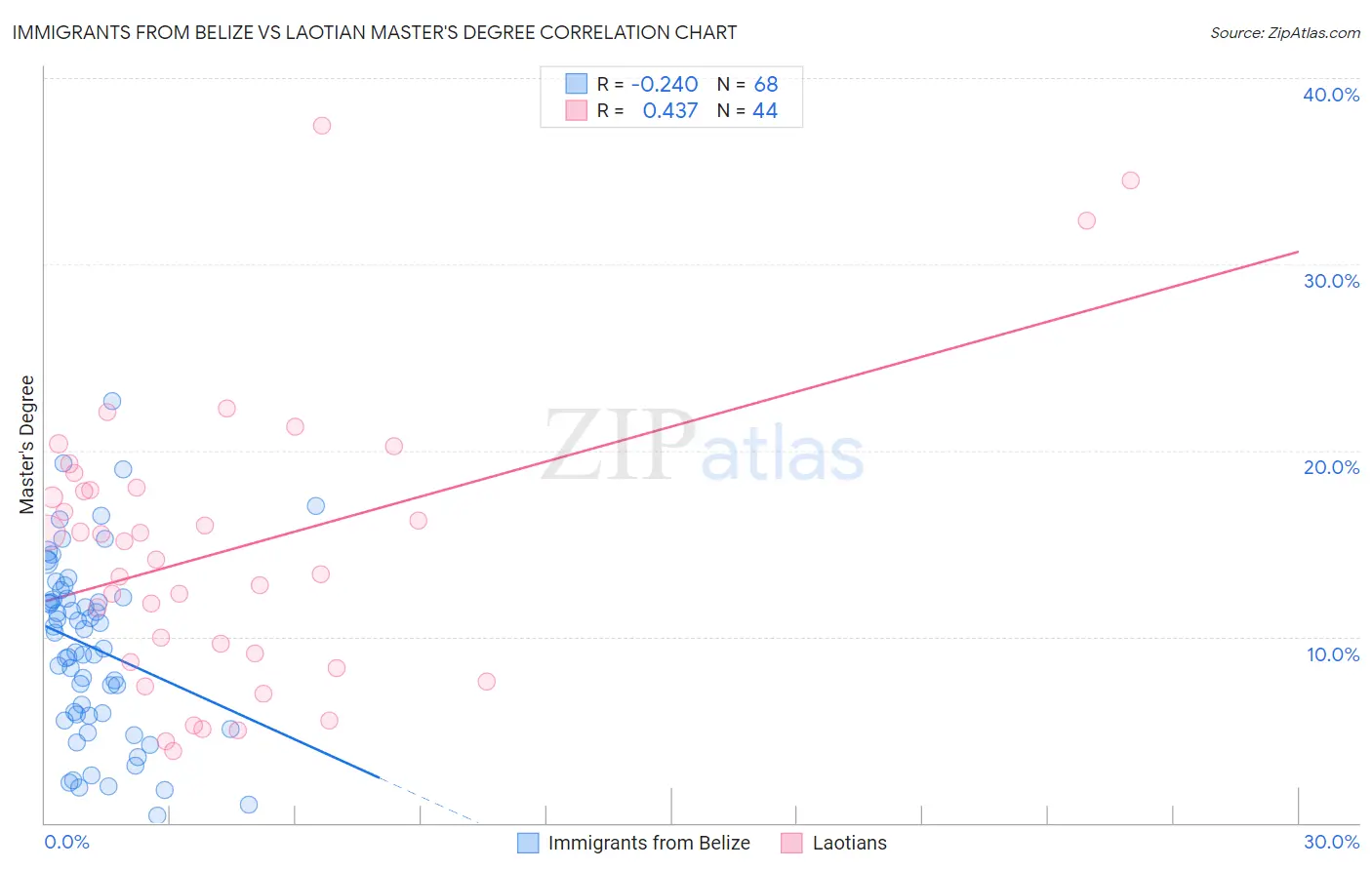 Immigrants from Belize vs Laotian Master's Degree Correlation Chart