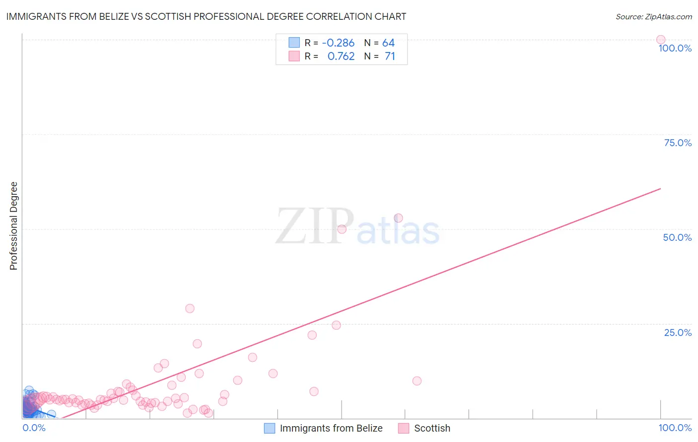 Immigrants from Belize vs Scottish Professional Degree Correlation Chart