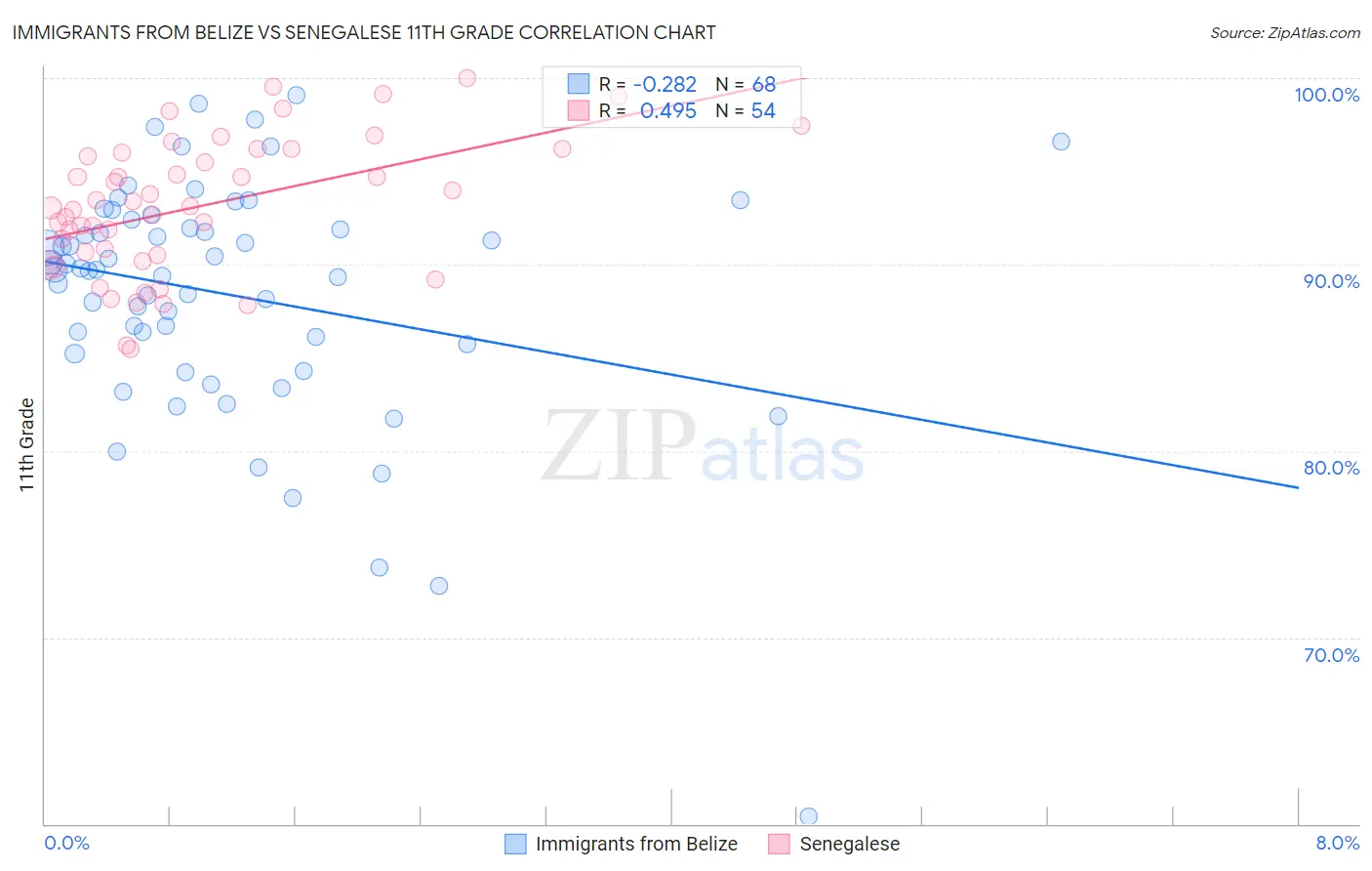 Immigrants from Belize vs Senegalese 11th Grade Correlation Chart