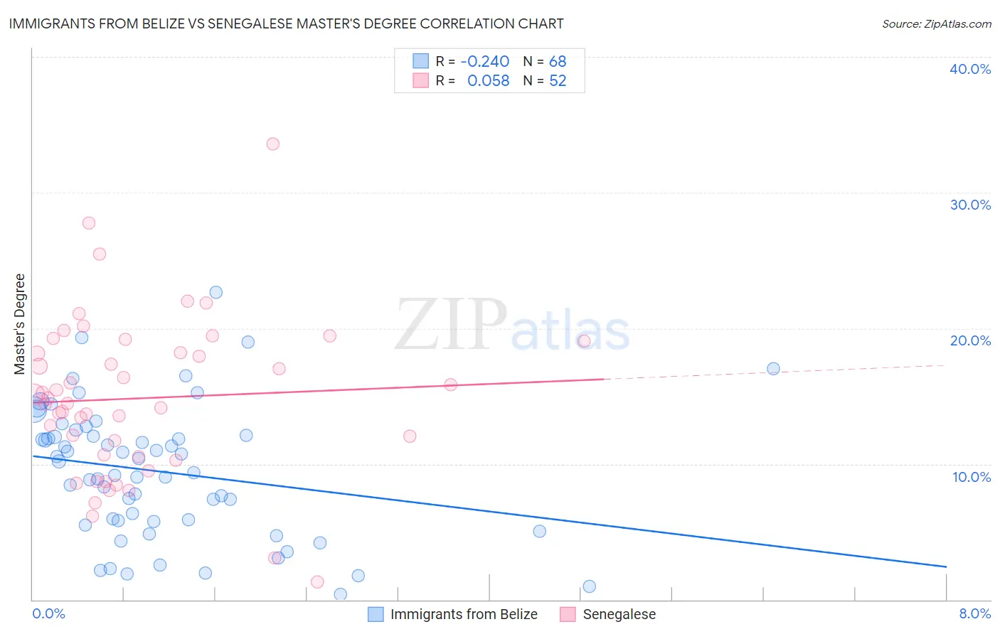 Immigrants from Belize vs Senegalese Master's Degree Correlation Chart