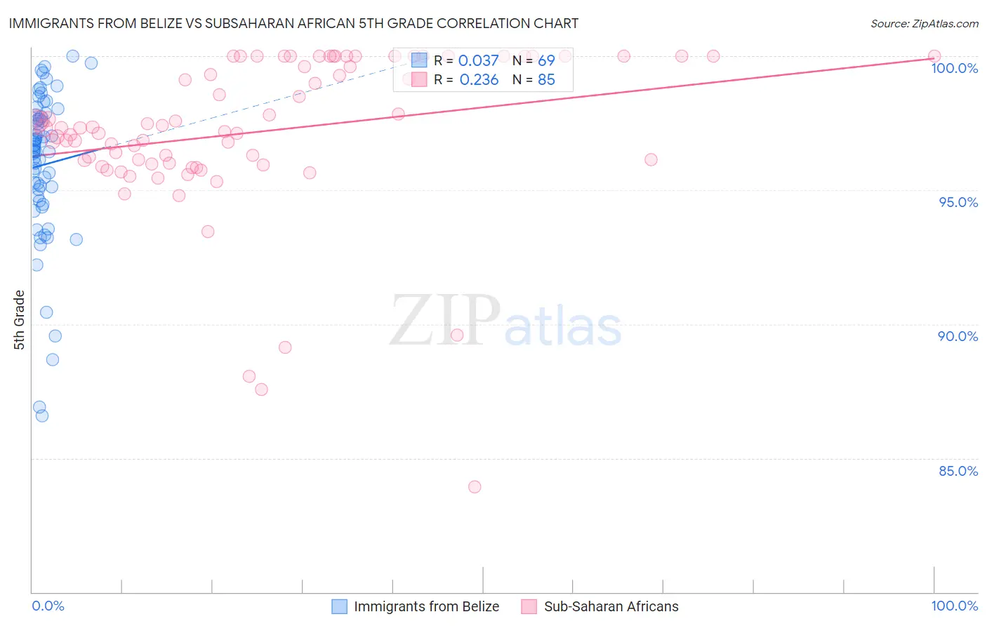 Immigrants from Belize vs Subsaharan African 5th Grade Correlation Chart