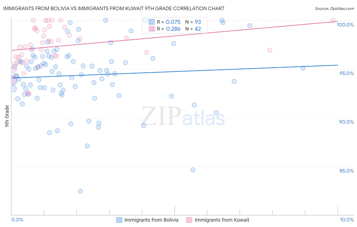 Immigrants from Bolivia vs Immigrants from Kuwait 9th Grade Correlation Chart