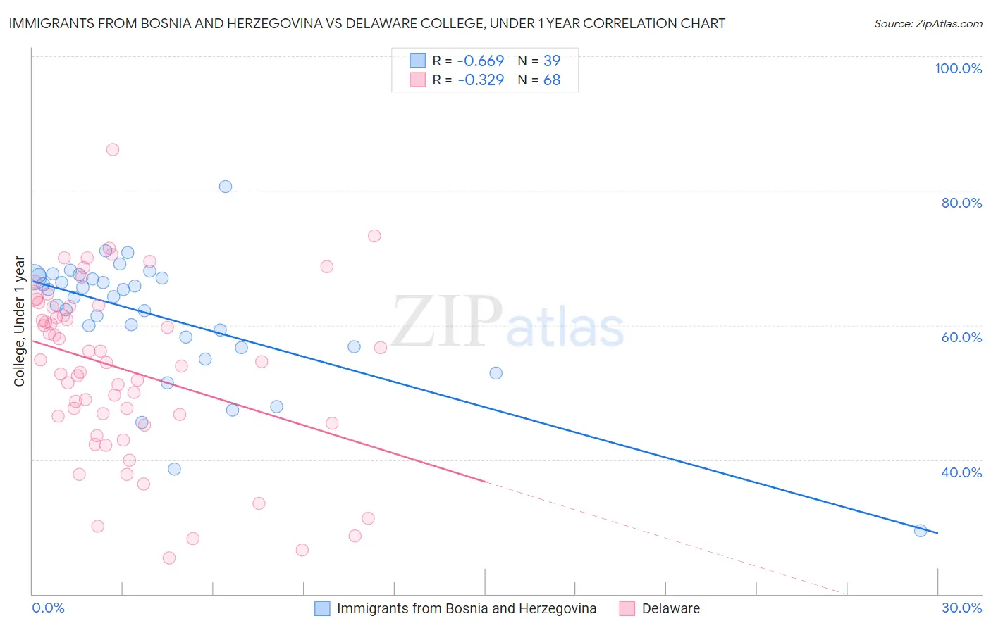 Immigrants from Bosnia and Herzegovina vs Delaware College, Under 1 year Correlation Chart
