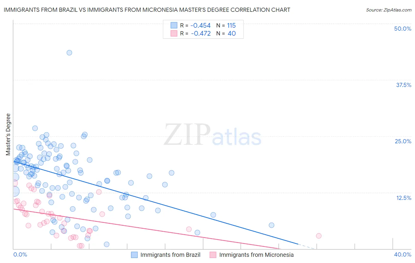 Immigrants from Brazil vs Immigrants from Micronesia Master's Degree Correlation Chart