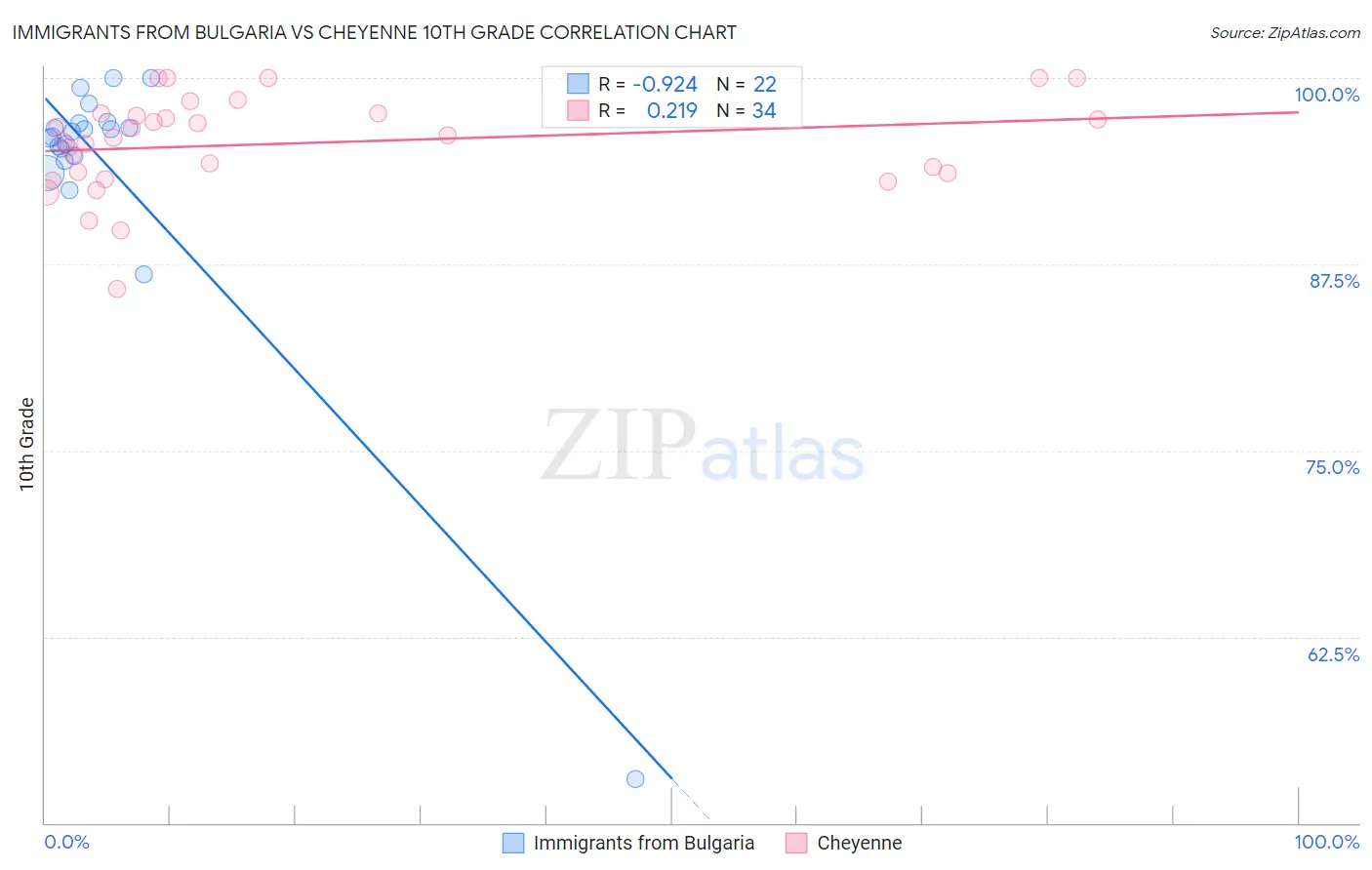 Immigrants from Bulgaria vs Cheyenne 10th Grade Correlation Chart