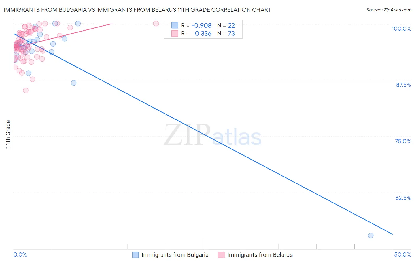 Immigrants from Bulgaria vs Immigrants from Belarus 11th Grade Correlation Chart