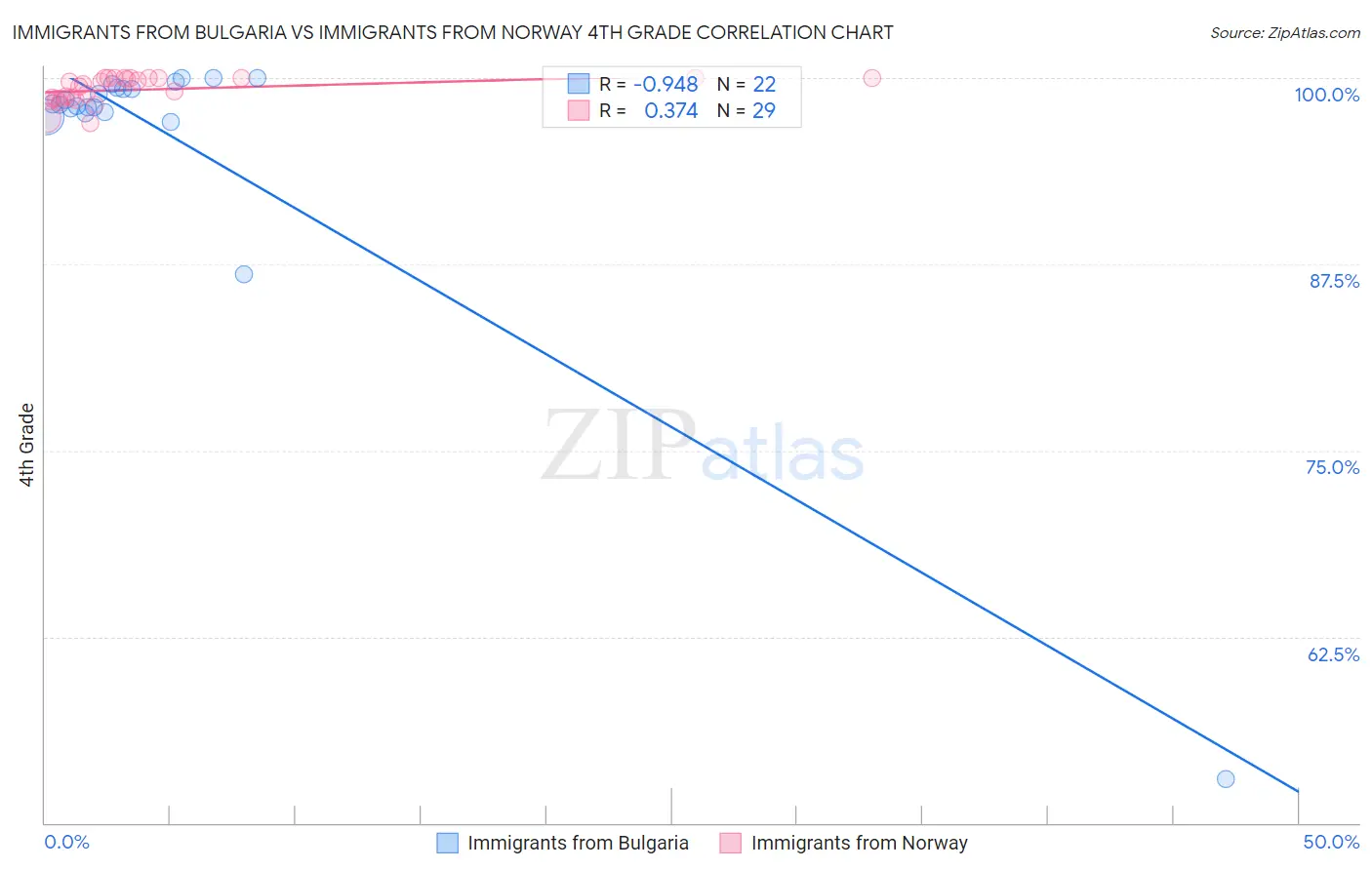Immigrants from Bulgaria vs Immigrants from Norway 4th Grade Correlation Chart