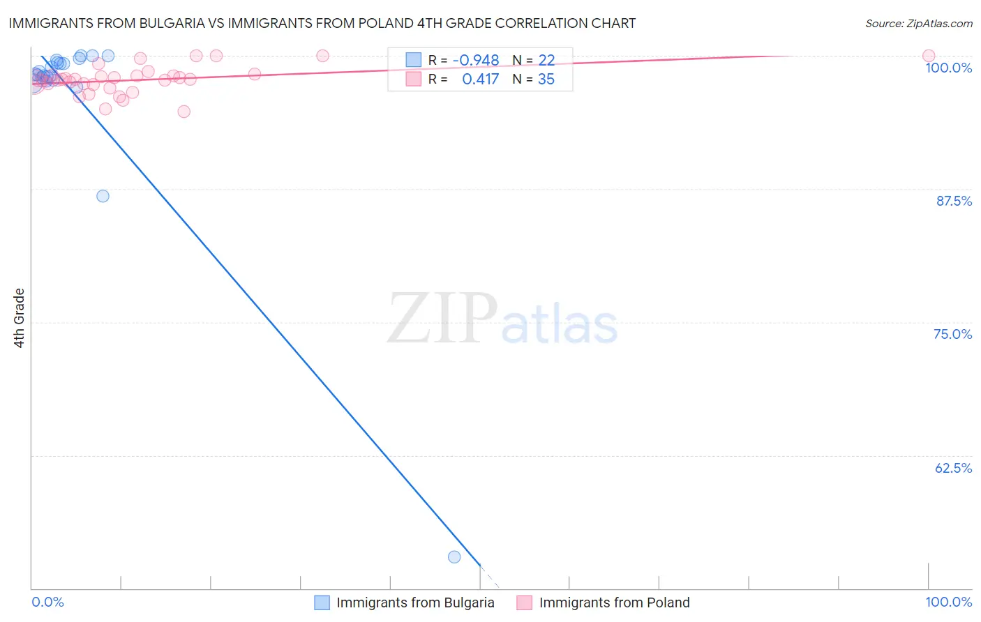 Immigrants from Bulgaria vs Immigrants from Poland 4th Grade Correlation Chart