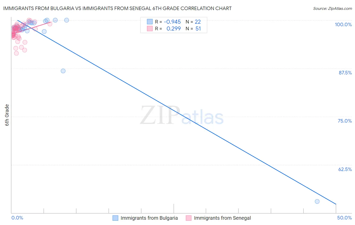 Immigrants from Bulgaria vs Immigrants from Senegal 6th Grade Correlation Chart