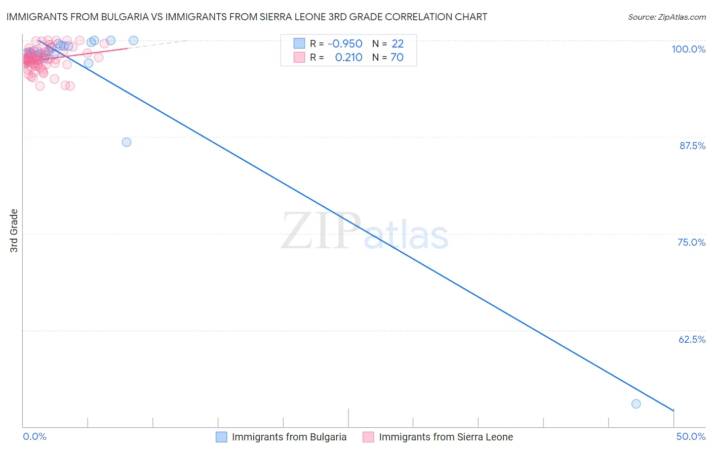 Immigrants from Bulgaria vs Immigrants from Sierra Leone 3rd Grade Correlation Chart
