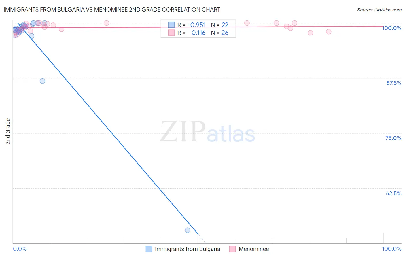 Immigrants from Bulgaria vs Menominee 2nd Grade Correlation Chart