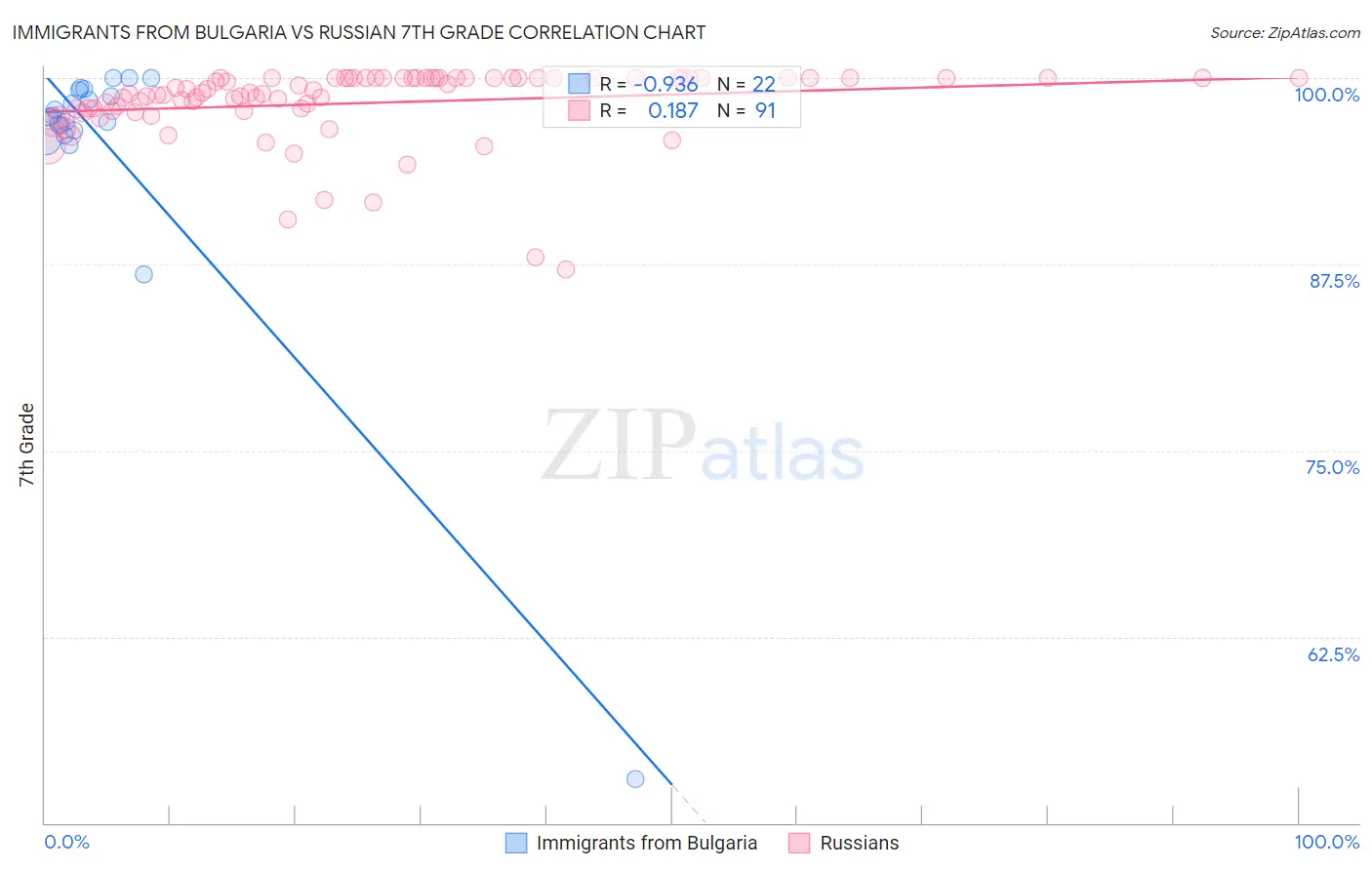 Immigrants from Bulgaria vs Russian 7th Grade Correlation Chart