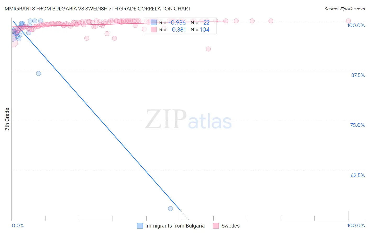 Immigrants from Bulgaria vs Swedish 7th Grade Correlation Chart