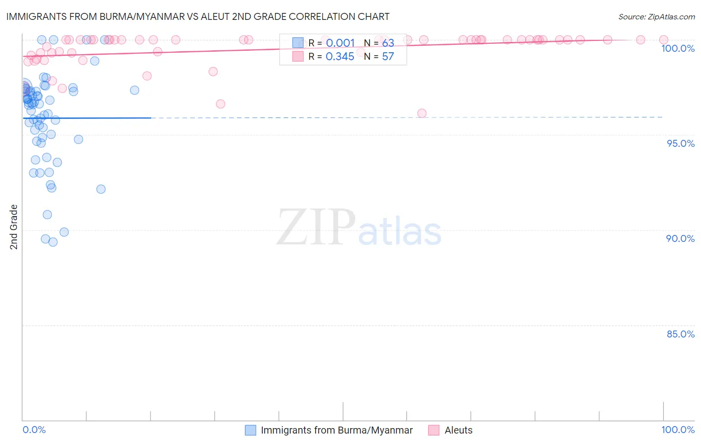 Immigrants from Burma/Myanmar vs Aleut 2nd Grade Correlation Chart