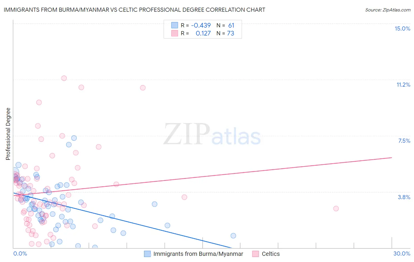 Immigrants from Burma/Myanmar vs Celtic Professional Degree Correlation Chart